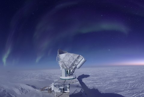 The South Pole Observatory combines the power of the South Pole Telescope and the BICEP Array for observing the cosmic microwave background (CMB), the oldest detectable light in the Universe, at six different frequencies. The CMB dates from the Epoch of Recombination (about 380,000 years after the Big Bang) when the Universe cooled enough that neutral atoms could form, releasing photons from their plasma cage to travel unimpeded through space.